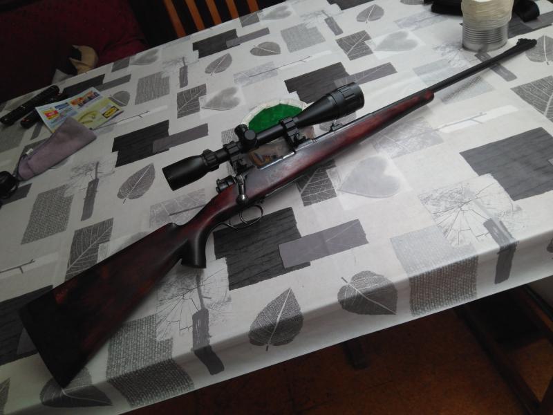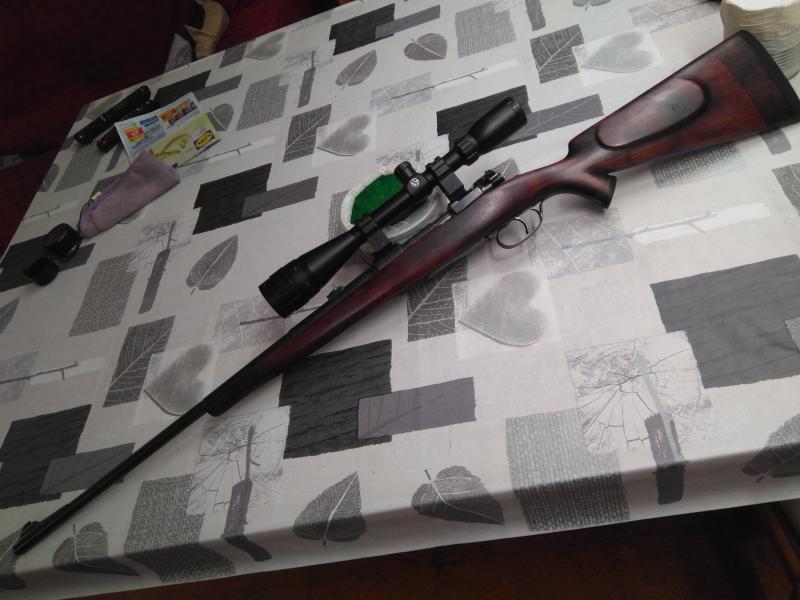 Es una versión civil fabricada por Máuser, no es ni una licencia ni de fabricantes alternativos, el cerrojo y sobre todo el disparador van mucho mas suaves que en uno militar normal, calibre 8x57 máuser, lo compre sin monturas así que lo tuve que llevar al armero a poner unas marca weaver, no es meramente poner y atornillar, ya que las que se venden como "monturas para acciones 98" siempre se ha de terminar de ajustar y mecanizar la trasera según rifle especifico.