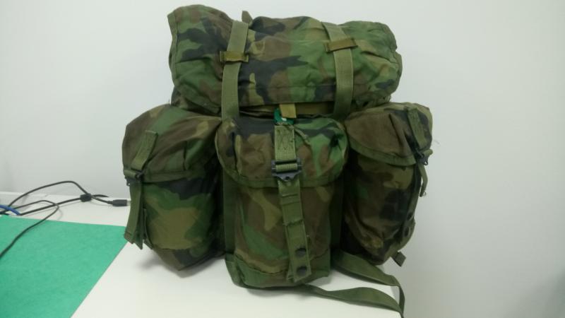 Mochila táctica ALICE talla M del Ejército de Estados Unidos. Mide 40 cm de altura aprox x 50 de ancho. Camuflaje.