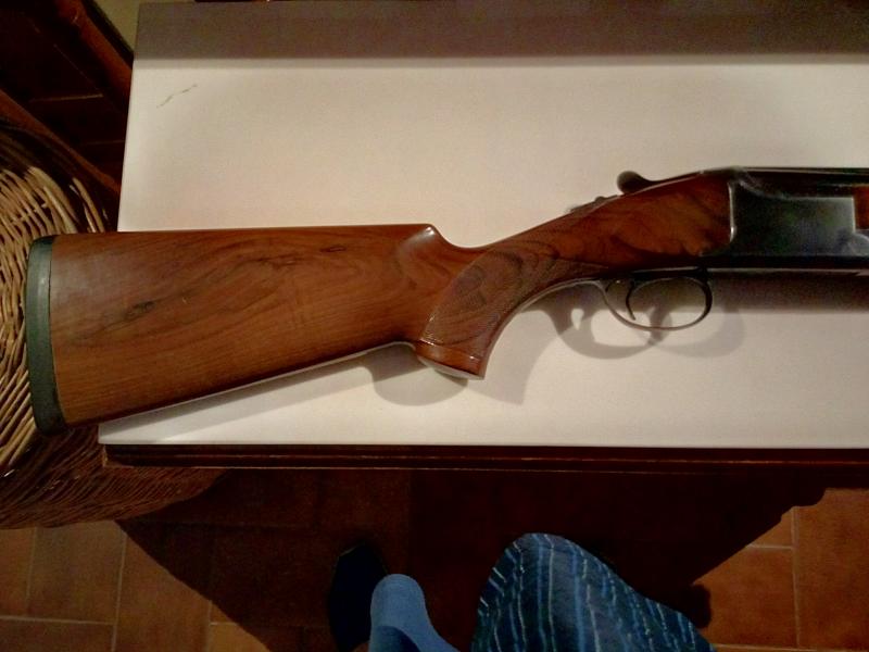 Escopeta de caza Browning, made in Herstal año 1977. Peso: 3,240kg. El conjunto báscula-culata, prácticamente pesa lo mismo que el conjunto cañón-guardamanos. Equilibrada, largo de culata: 36 ccm. Expulsora, cañon de 70 cm., salida de recámara 18,3; choques belgas de **- y *- , equivalentes a xxxx y xx. Cañones cromados, relucientes como acabados de estrenar, con un plomeo impecable, ideal para la caza. Selector de tiro. Banda estrecha con punto de mira y referencia central para una correcta alineación con el objetivo. Precio: 650 €.