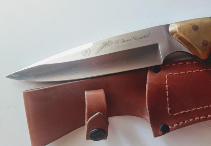 REBAJADO Vendo cuchillo de monte marca, El Gran Cazador, mide 18 cm. de hoja y 32 cm. en total, con funda de cuero, muy cuidado, precio 80 €. Esta en Madrid. REBAJADO a 70 €