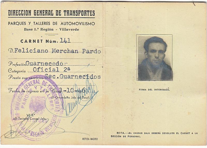 Documento de 1946. de carton que venia con la cartera y foto.