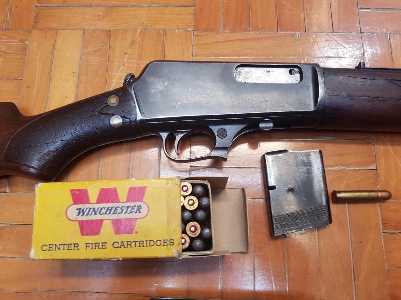 El rifle del calibre .351w, es un Winchester modelo 1907. Es uno de los primeros rifles semi-automáticos de la marca Winchester, cuya producción comenzó en 1906 y fue incluso utilizado en la primera guerra mundial por los observadores de los aviones de guerra. Dejó de producirse en 1957.