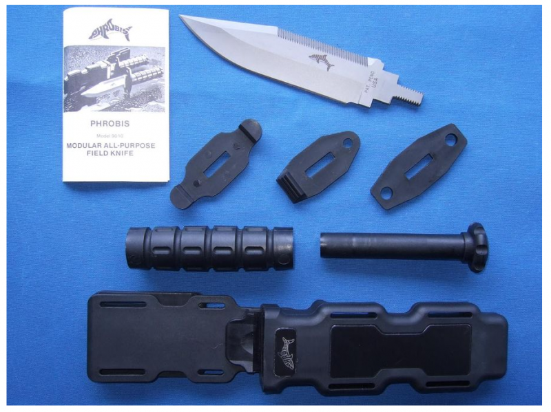 Ese tipo de cuchillos de espiga roscada, salto a la fama, por la década de los 80, tanto que incluso lo usaron los SEAL, durante una corta temporada, el PHROBIS, y se oxidaba y rompía la espiga por la corrosión del agua salada........