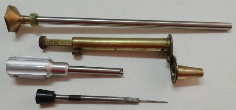VENDO lote de accesorios que incluye: dosificador de pólvora, embudo, llave para chimeneas y aguja desatascar
