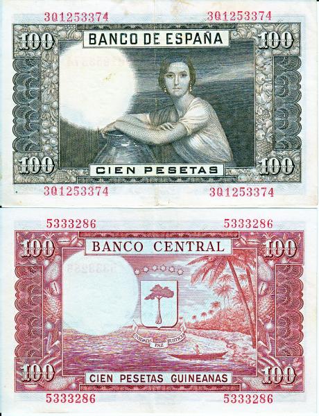 100 Pesetas de Guinea Ecuatorial tras su independencia de España.