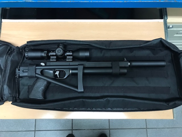 la vendo con una funda/bandolera acolchada perfecta para esta arma, puede ir suelta o sujeta con velcros.