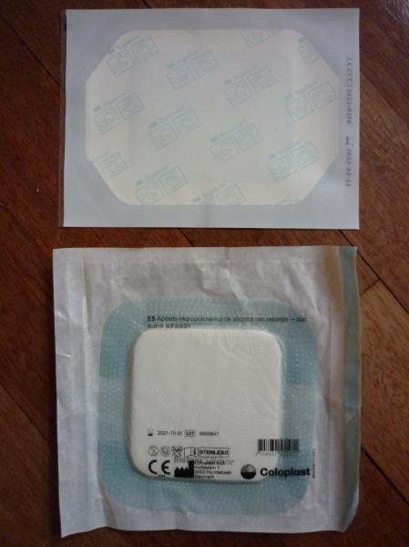 Estos 2 ultimos apositos podrian utilizarse como parche oclusivo de fortuna, al tener reborde adhesivo y por el material del que estan fabricados no permiten el paso de aire.