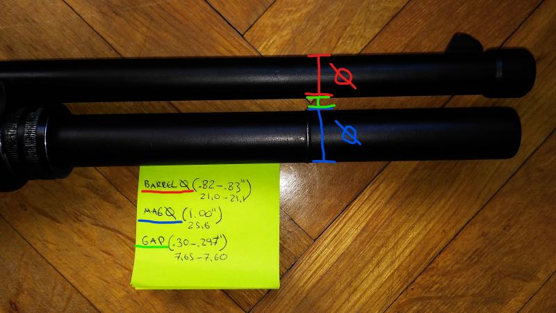 He comparado medidas con una M500 y no coincide ninguna medida asi que esos barrel clamp descartados.