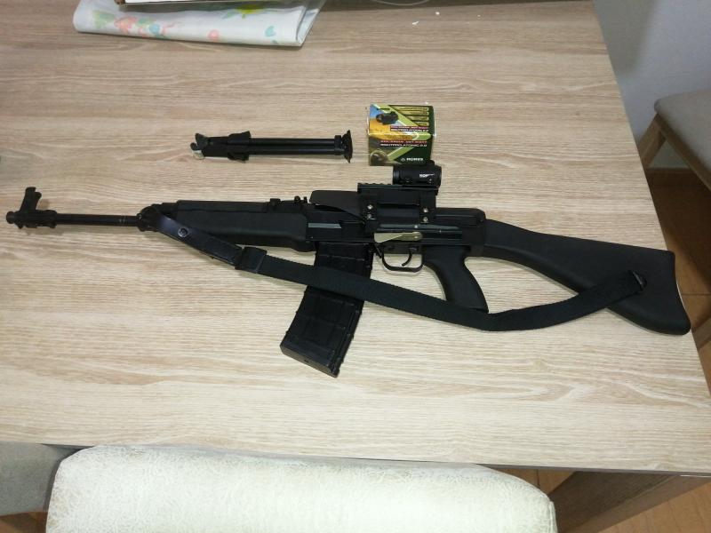 Incluyo reflector de cartuchos para que caigan todos en el mismo sitio, punto rojo/verde KONUS 1x objetivo 20mm y lente de 65mm mas bipode NCSTAR especial AK/SKS.