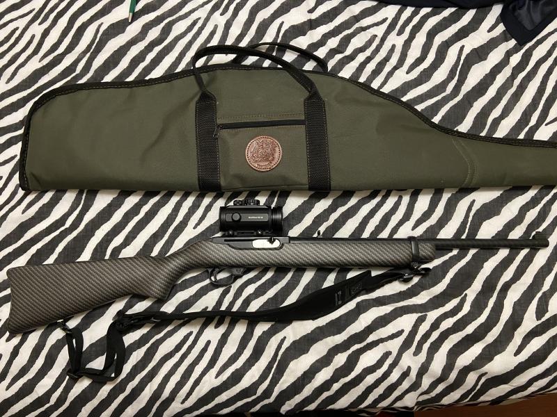 Vendo Ruger customizado y con 15 disparos REALES. Lo compré en mayo de 2018 a una persona que no lo había sacado al monte más que un día y lo preparé a mi gusto para estrenarlo la temporada pasada, pero por temas de trabajo me fue imposible y este año ha sido igual; está equipado con hidroimpresión en efecto carbono gris para la culata y efecto carbono negro para cañón, monturas y cajón de mecanismos, punto rojo Delta Multi Dot HD 36 montado sobre carril Weaver, correa elástica Solognac y funda Yesport a medida con interior de borreguillo. Todo a estrenar, ni un roce. Si se recoge en mano en Logroño adjunto un regalo valorado en 50€.