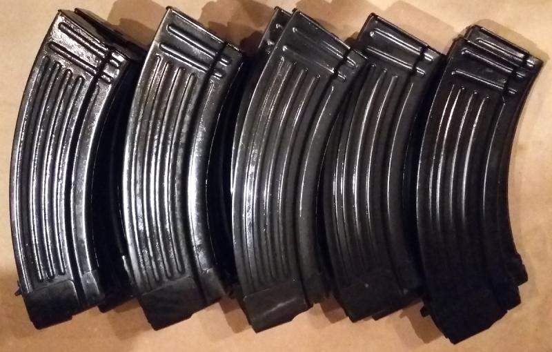 -13 Cargadores para AK-47 calibre 7.62x39mm. Capacidad para 30 cartuchos. Nuevos de arsenal militar soviético, aún con la grasa original de fábrica, como puede apreciarse en las fotos. Material acero parkerizado negro. Precio: 24€/ud. + portes. El lote completo de 13 cargadores por 285€ portes incluídos península. AHORA 20€ Y PORTES GRATIS!! Y A PARTIR DEL 2º, A 13€ EL CARGADOR!! (2 VENDIDOS. QUEDAN 11!!)Todos Vendidos!!