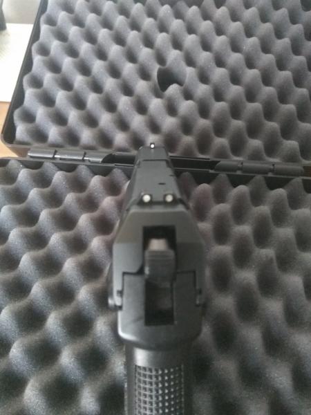 Esta en perfecto estado de funcionamiento; las letras blancas se las hice con Tipe, por lo que se le puede quitar cuando se quiera; los cargadores perfectos; marcas normales de llevarla en la funda oculta de paisano; guiada en A; poquísimos disparos, no mas de 200; libro de instrucciones; maletín original HK; la puedo adaptar para zurdo, tengo la palanca, así como ambidiestra