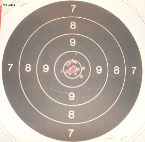 Tirada como de costumbre,una vez hecho el ajuste la dianas son sin cortes,ni movido ajustes.Visor corregido en la distancia de 50m...y lo mismo,tal cual han salido y tampoco he movido ajustes.