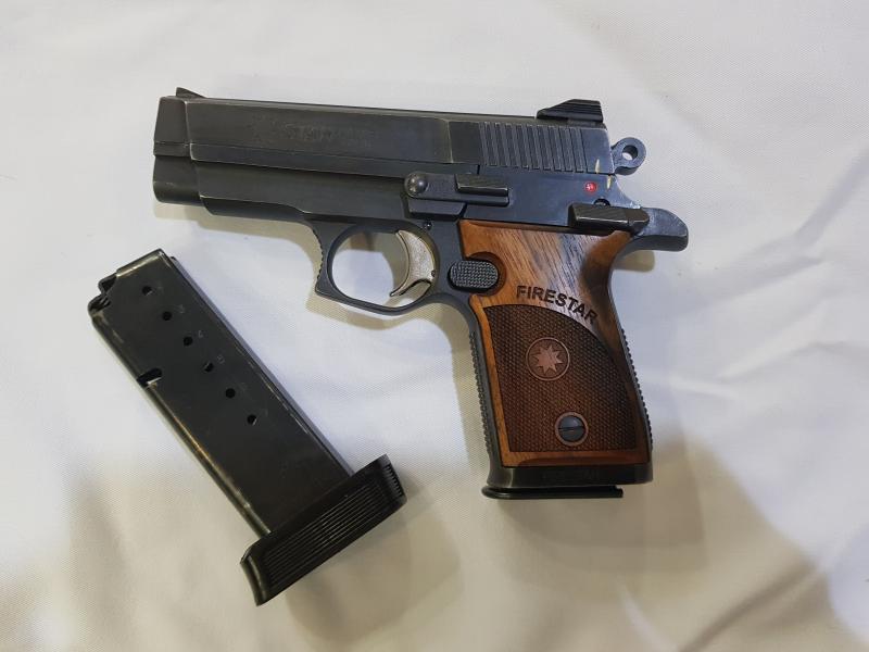 Pistola marca Star , modelo Firestar m43 , calibre 9 pb , con dos cargadores (uno de ellos con +1 y con mejor apoyo para el meñique), con cachas espectaculares en madera y un magnífico agarre.