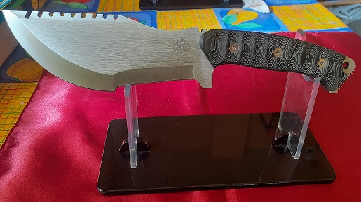 Cuchillo de Monte CDS - J&V modelo Saurius : Hoja enteriza de Acero MoVa ( 58 Hrc ) de 16 cm. Mango de 14 cm de micarta negra. espesor hoja 5 mm. Funda de piel.