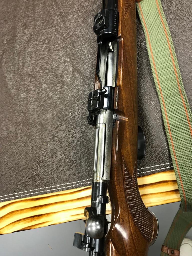 Cambio Mauser cerrojo en calibre 30.06. Con bases y anillas extra-altas para cerrojos M98. Las anillas son para tubos de 30 mm.