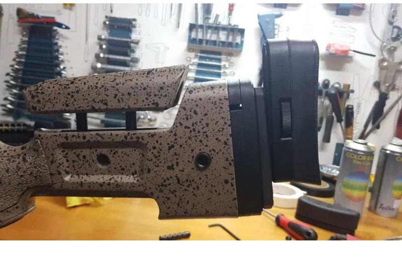 Es muy sencillo más de lo que parece,tiene que coger la cantonera que trae donde va los tornillos y ponerla en la nueva, las pone en la culata del rifle para que este digamos alineadas con la culata despues señala los agujeros de los tornillos en la nueva,les haces unos agujeros con un taladro para que entre los tornillos los mismos que trae la vieja,en la cantonera nueva donde va la cabeza de los tornillos le haces un rebaje con otra broca para que se quede enrasado con la cantonera y ya está puesta,si tienes alguna duda me dices