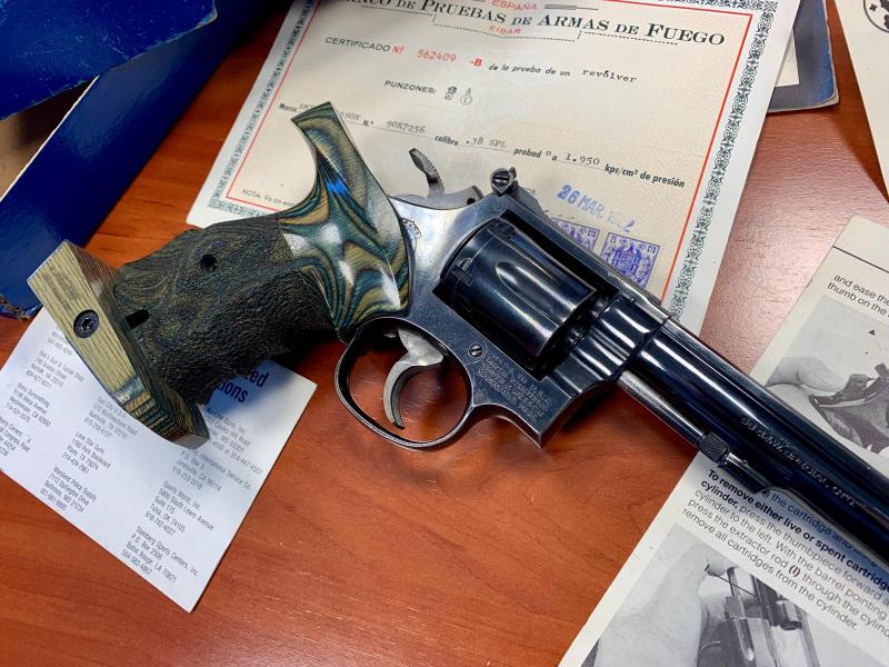 Además de las cachas normales incluyo otras anatómicas marca Nill sin retoques (nuevas cuestan 180 euros) y la caja original del revólver.