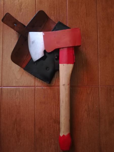 Vendo hacha datada en funda de 1959. En perfecto estado. Funda para porte en cuero con refuerzo de metal para proteger del filo.
