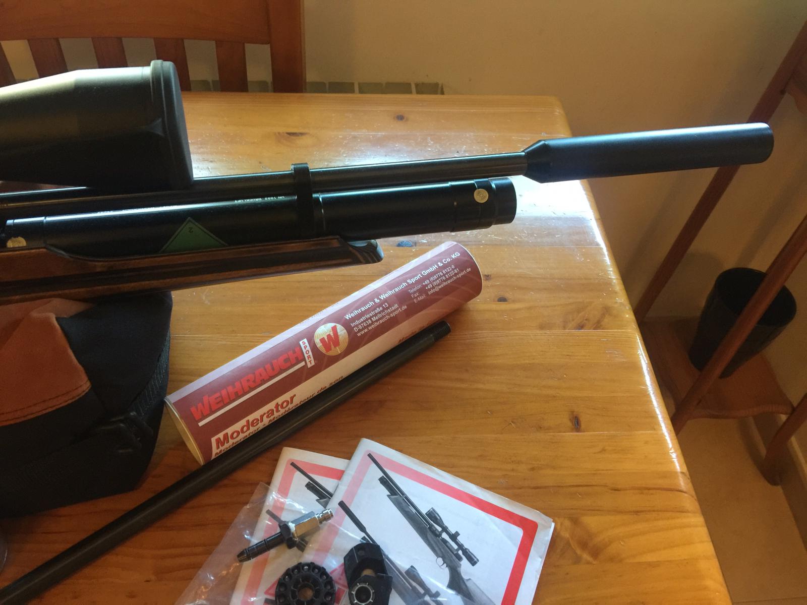 Carabina hw100 en perfecto estado, dos cañones uno corto y otro largo, silenciador weihrauch,visor Bsa 32 aumentos, cargador 10 tiros más uno monotiro,valvula de llenado rápido,todos los accesorios 600€