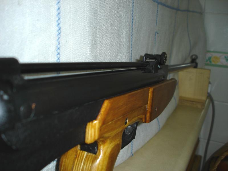 Éste fin de semana pude probarla y está bastante bién de fuerza. En cuanto a precisión, tiende a tirar algo alto, pero no puedo bajar más el alza pues está a tope. Tendría que aflojar el tornillo del punto de mira y poder subir un poco el punto, pero desgraciadamente no hay dios que lo afloje.