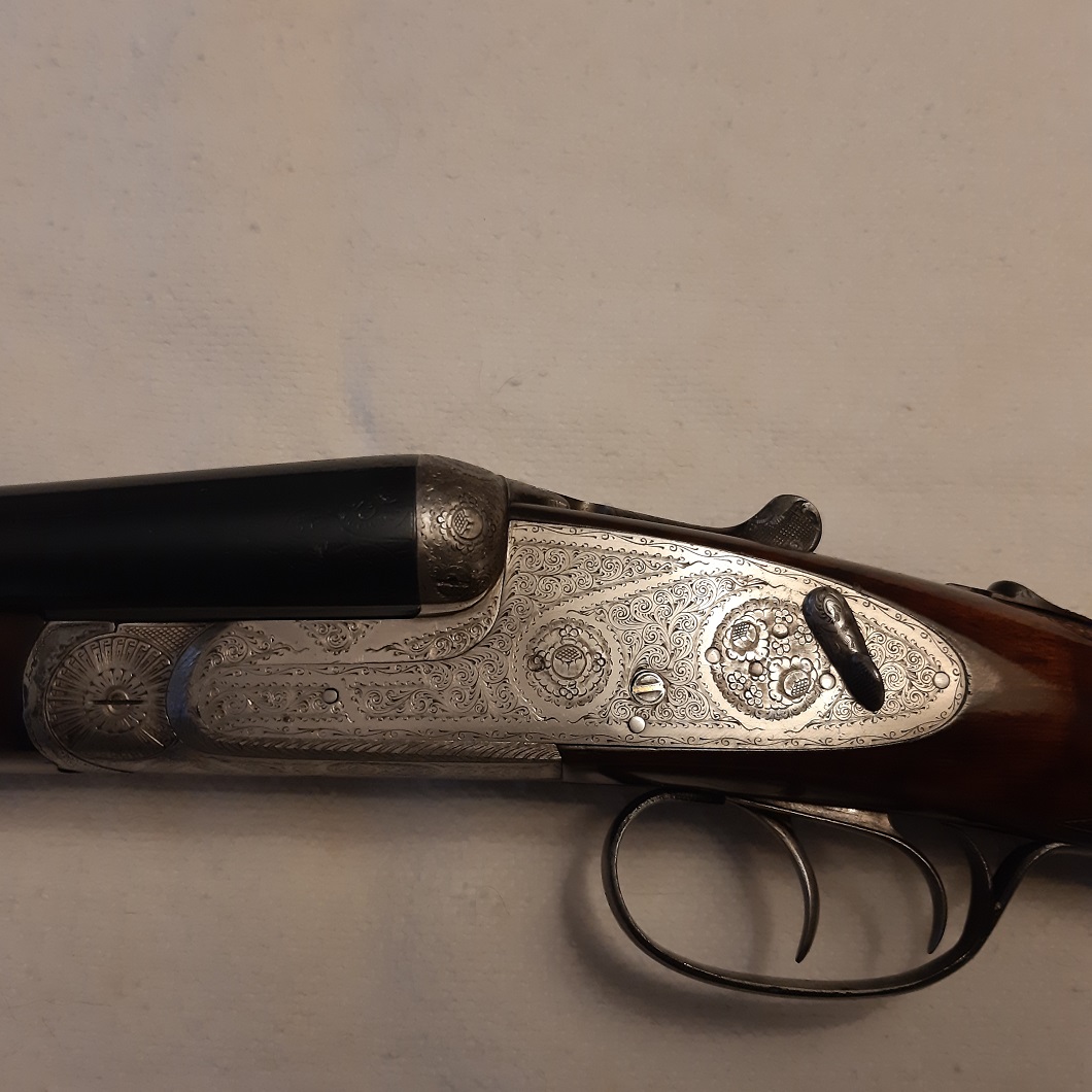 Escopeta paralela marca J.Z. cal. 12/70 canones de 70 cm. con unos choques de xx y x estrellas, tiene disparador doble articulado, llaves desmontables y solista Churchill, la culata es del tipo ingles con cantonera de goma, con una largo de 37 cm., el peso total esta en 2.500 gr., las animas interiores son de 18,3, los canones estan repavonados, todoel conjunto esta perfecto y es una gran maquina, 01/1.970. Su pecio 800 eu. Atienodo watts app y correo, no interesan cambios, solo venta....