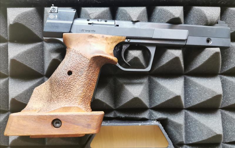 Por cambio de proyecto de tiro, vendo mi segunda pistola del 22, una Hammerli 208s de segunda generación a partir de la numerada 43.295. Esto quiere decir que a partir de ahí venían equipadas con el nuevo disparador permitiendo ajustar la lengueta, y el peso del mismo tanto del primer como segundo tiempo.