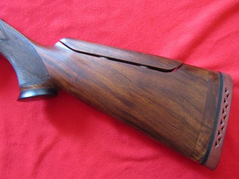 Bueno ahí van las fotos. Los retoques consistieron en una pieza de madera de raíz para alargar la culata, que me estaba corta, y una pieza de madera de ébano para rematar el pistolet y mejorar la empuñadura, aparte de embellecerlo estéticamente en mi opinión. Con esto, unido a la carrillera regulable que le puse la temporada anterior, doy por finalizados los ajustes en la culata, que ahora ya está completamente adaptada a mi ergonomía. Observad el fino trabajo que hizo el culatero, haciendo incluso coincidir en lo posible las vetas de la madera...