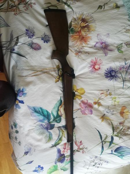 Rifle swiss arms shr970 calibre 300wm.Seguro 3 tres posiciones y gatillo al pelo francés. Cargador extraible de 3balas. Maderas muy bonitas.