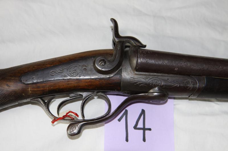 Escopeta de caza de retrocarga, de dos cañones. Fuego anular. Mecanismo de tipo Lafoucheux con muelle real interno y trasero.