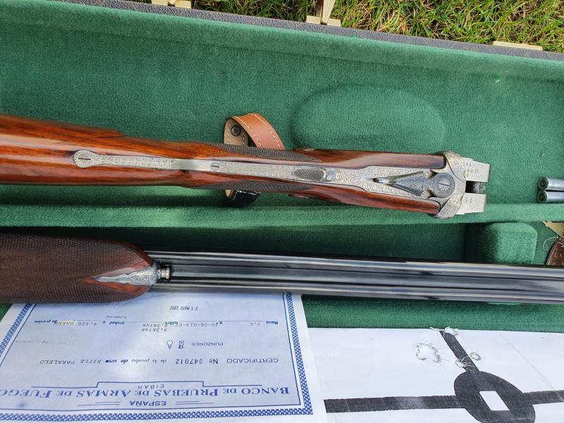 Exclusivo rifle Express EGO modelo exclusive, calibre 9, 3x74R , maderas seleccionadas de raiz de nogal, expulsores, gatillo articulado, salida de gases raberas superior e inferior, recamara, bandas, pletinas largas, todas grabadas con finos grabados holland&holland, cantonera holland, deposito de municion en culata, hecho por encargo, su maletin original Ego,con sus papeles del banco de pruebas , es un arma muy exclusiva y creo hay muy pocas, costo 12000€ y se vende al 50% de su costo. solo verdaderos interesados en comprarlo.Subire fotos.Un saludo compañeros, mucho animo y fuerza en esta situacion.Subire fotos.