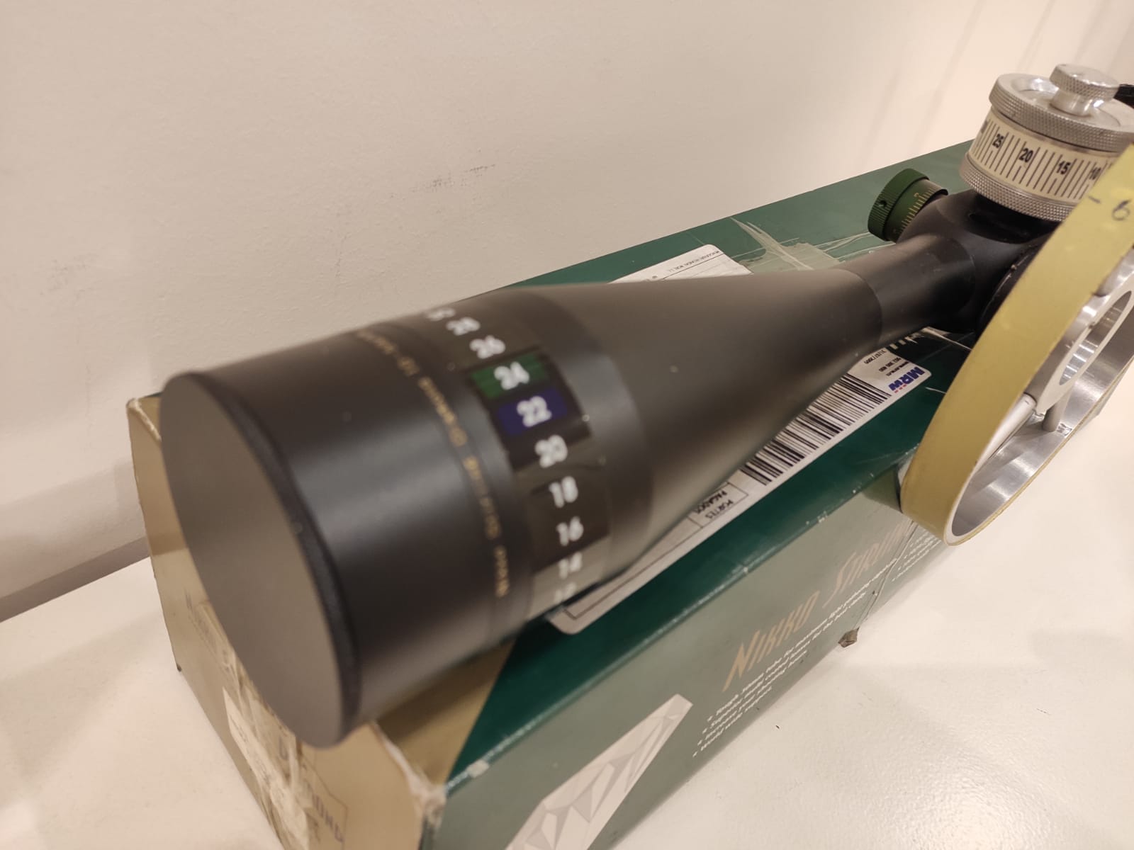 También lo podría vender con un visor Nikko Stirling Diamond MK2 tal y como se ve en la foto con rueda de paralaje en alumino de 170mm de diám. montada con imanes de rápido montaje, torreta sobredimensionada reseteable, goma ocular tipo oreja de cerdo, etc. Todo el conjunto por 2300€.