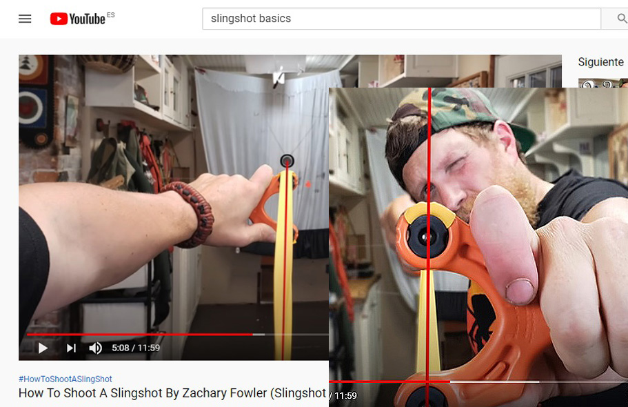 Seguro que también la técnica del disparo ha cambiado y mejorado, en mi caso aprendí que al contrario de lo que cabría hacer, es decir, llevar la mano del proyectil hacia atrás manteniendo fija la posición de la horquilla, como si fuese un arco de flechas, lo que debía hacerse era fijar la posición del proyectil junto a la cara y extender la mano de la horquilla hasta su punto máximo, siendo esta última la que apunta.