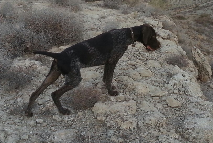 Años atras , en los 90, tuve una Deusch Drahthaar muy parecida en careto y disposicion de manchas, aunque en negro, a este cachorro. Aun me acuerdo mucho de ella pues la crie un poco juguetona y aparte de la caza, tambien me hacia compañia en el trabajo en el campo y nos pegabamos alguna batallita jugando pues era fuerte a cojones y yo entonces mas joven. Lo que si era es un pez, estaba mas rato metida dentro del agua que fuera, tanto en invierno como en verano. Vicho que caia al agua alla que iva pero cuando llegaba a la orilla estaba medio destrozado pues era muy fuerte de mandibula. Cuando nadaba parecia que tenia motor pues tenia la cola cortada y la parte que le quedaba la iva moviendo mientras nadaba y parecia que era la elice. Ahora estoy sin perro pues cazo poco, me dedico mas al tiro de avancarga, y mi intencion es no tener ningun otro perro y espero que no me ofrezcan ningun cachorro de drahthaar por que soy capaz de caer. Buenos recuerdos de ese animal en particular y eso que he tenido muchos perros.