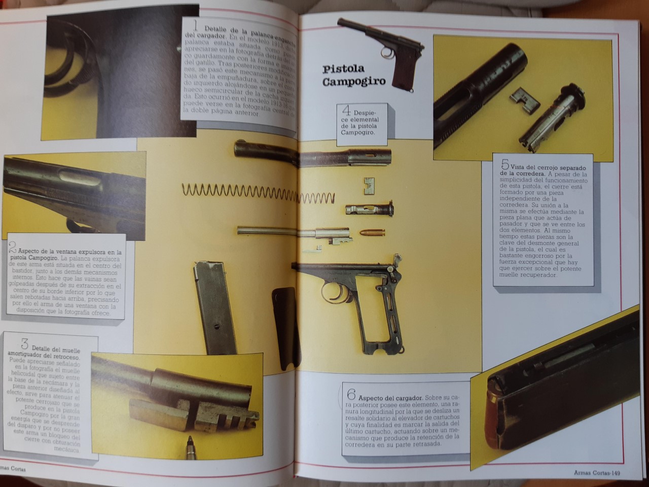 Es de 1985, ya ha llovido. Lo editó en fascículos Hobby Press, para formar un único volumen de casi 400 páginas en gran formato (casi A4), todas ilustradas en color, como era costumbre en aquellas enciclopedias por fascículos, que al final te salían por un riñón y la mitad del otro. Organizado por países, y de ellos las pistolas (y algún revólver), desde finales del XIX hasta el momento de publicación de la obra (con modelos como la HK P-7, novedad en su época, o la Beretta 92). Las armas más representadas son las españolas, cosa de agradecer en una obra de este tipo. Incluye fotos de despiece básico de los modelos más importantes. Si lo encontráis en precio, puede merecer la pena.