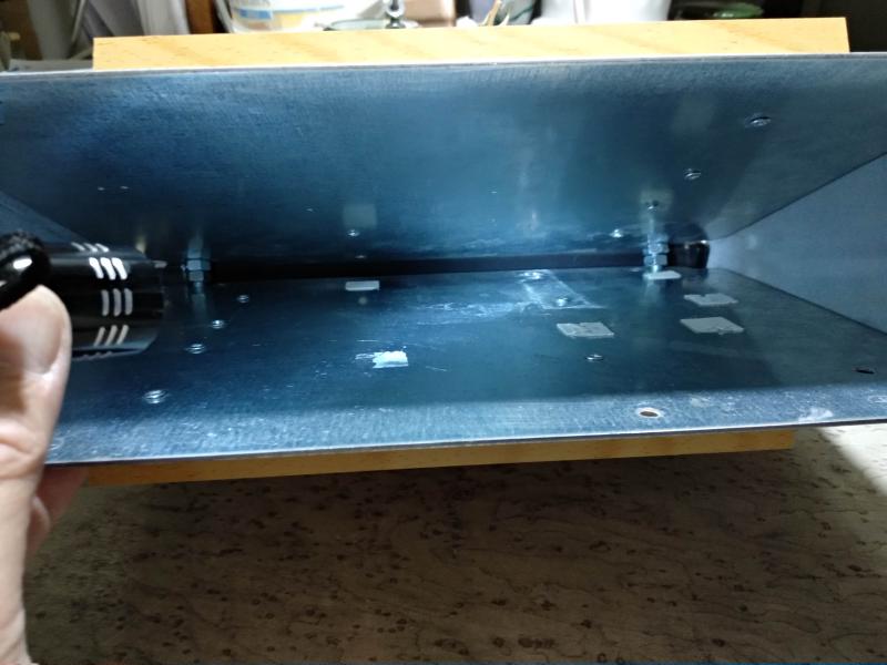 Para recoger los balines un tubo de hierro de 3*3, 1'5mm de grosor, le hecho un canal que entran justo los bordes de las chapas y para ruido le he puesto un par de tablas atornilladas.