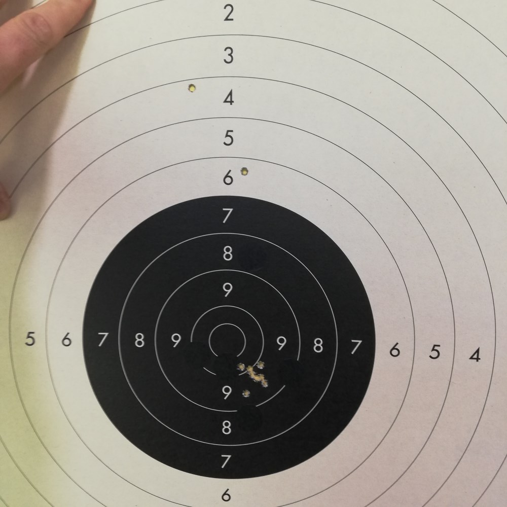 Probé también munición diferente. La KS PISTOL MATCH. Por ahora no puedo decir que fuera mejor o peor que la GECO ya que no tengo la experiencia suficiente para poder diferenciar tan específicamente las municiones. Pero quedé contento con ella.