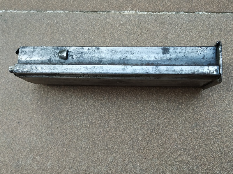 Buenas, vendo cargador de 20 cartuchos de capacidad de la pistola B H (Beistegui Hermanos) MM31 4º modelo, fabricado a principios de los años 30, el estado del cargador se puede ver en las fotos, carece de pavón original , fue lijado para eliminar la oxidación que tenia y actualmente tiene muy ligeras picaduras perfectamente eliminables con un pulido, aparte de esto, carece de abolladuras y es completamente funcional , en referencia a marcajes solo tiene el número 750 en la tapa de la base del cargador.