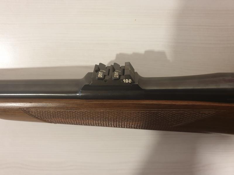 Es un rifle muy robusto, para toda la vida, construido enteramente de acero y posee una bonita culata de nogal. Tiene gatillo al pelo y es totalmente ajustable. Dispone de alza de librillo con distancias a 100, 200 y 300m. Longitud del cañón de 66cm. Lo entrego con monturas y anillas de 30mm.