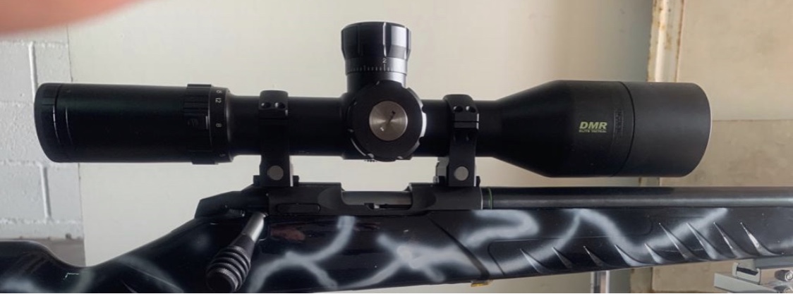 En la foto aparece un Bushnell Elite Tactical 3,5-21x50, de 34 mm de tubo, en una carabina Sako. Las anillas Picatinny llevan, en este caso concreto, unos adaptadores internos opcionales, que no elevan el conjunto, para poder acoplarlas al carril de 11 mm de la Sako.