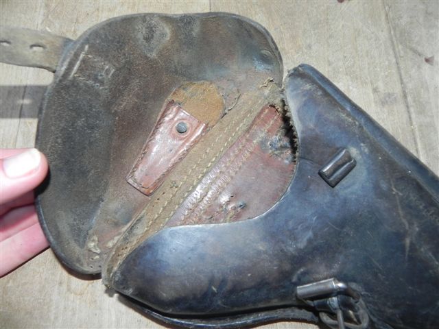 Se usaron piezas pequeñas de cuero procedentes del portacargador de la funda de 1916.