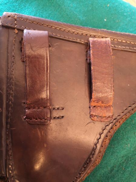 Se usaron piezas pequeñas de cuero procedentes del portacargador de la funda de 1916.