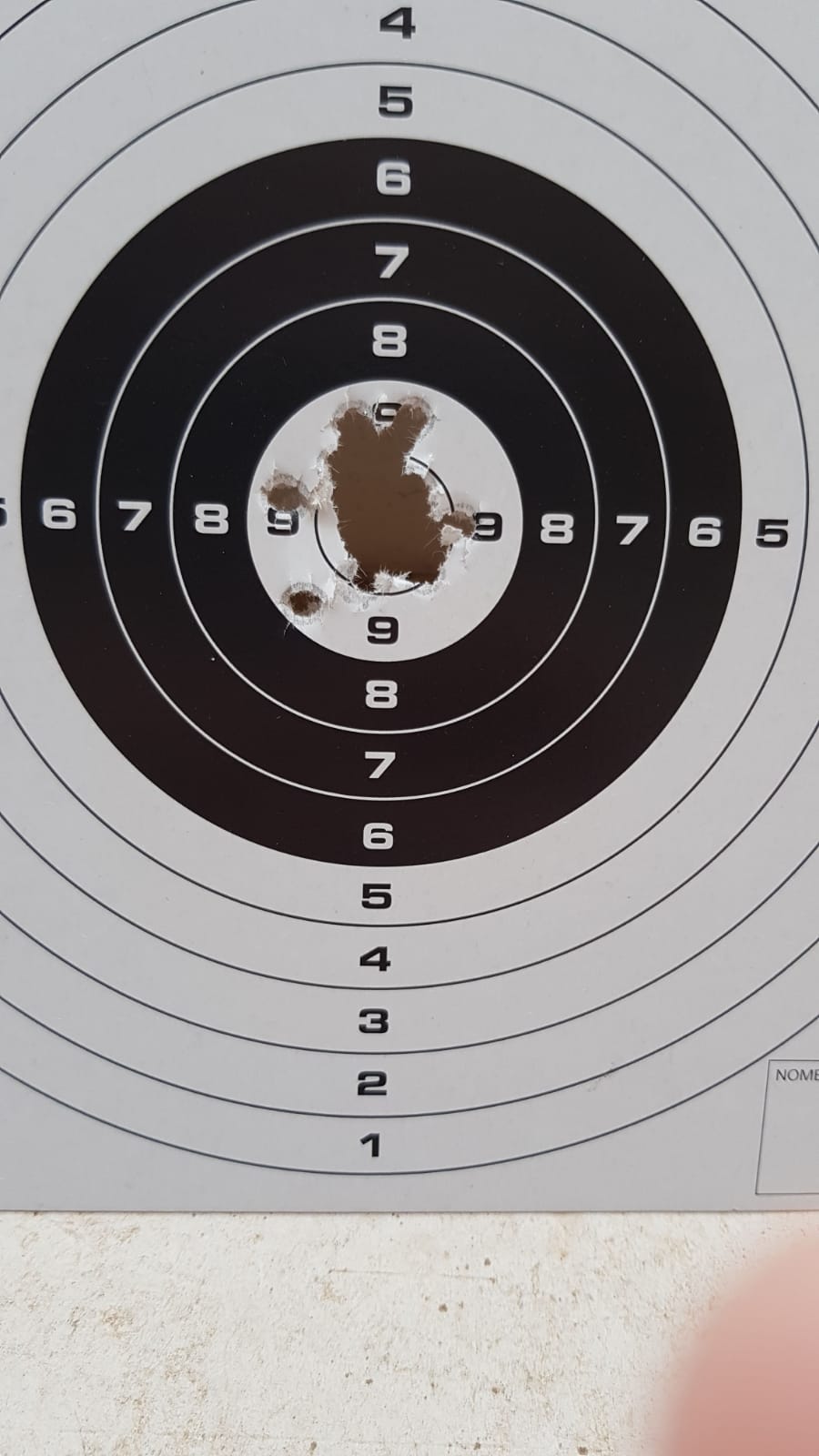 . fue la semana pasada, un día de esos que algo sobrenatural te sujeta las manos, tiradas con la pistola Weihrauch HW40 a 9 metros, 15 tiros, con JSB RS, diana Gamo, ahi va