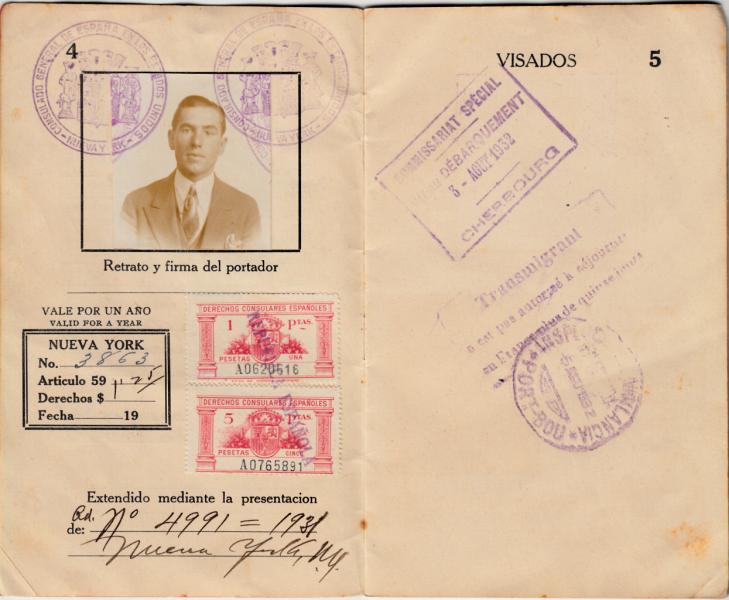Pasaporte Republicano expedido en el consulado de Española en Nueva York