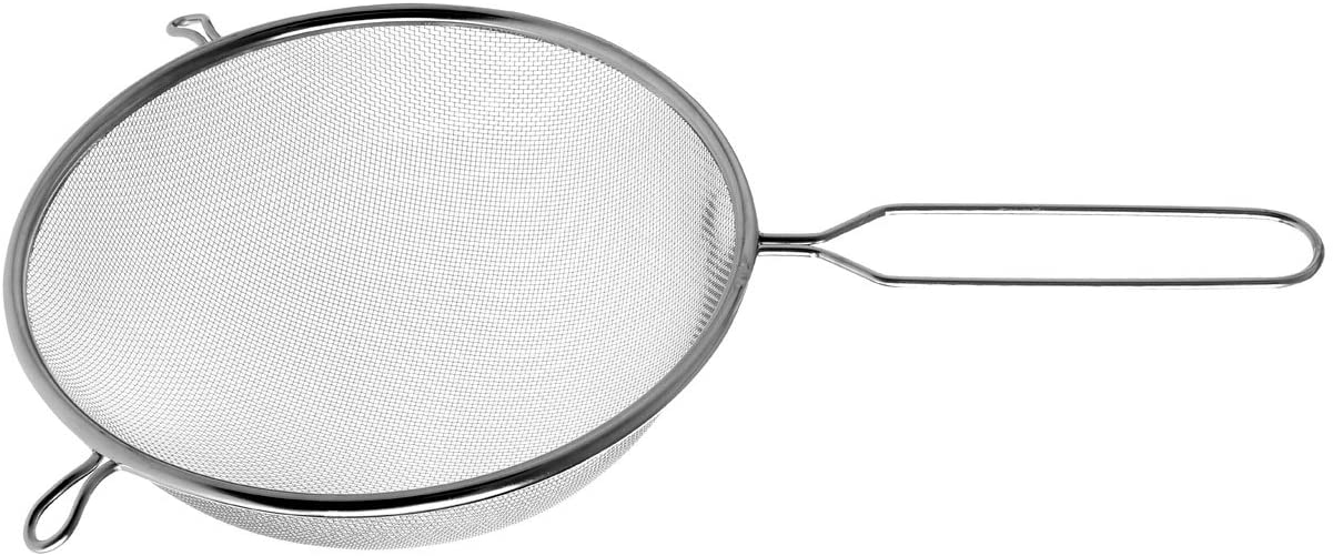 Las bolitas caen en el bol a través de los agujeros y las vainas se van quedando en el colador. Voy echando agua limpia y enjuagando. De vez en cuando voy volcando las bolitas en un colador tupido de cocina como éste: