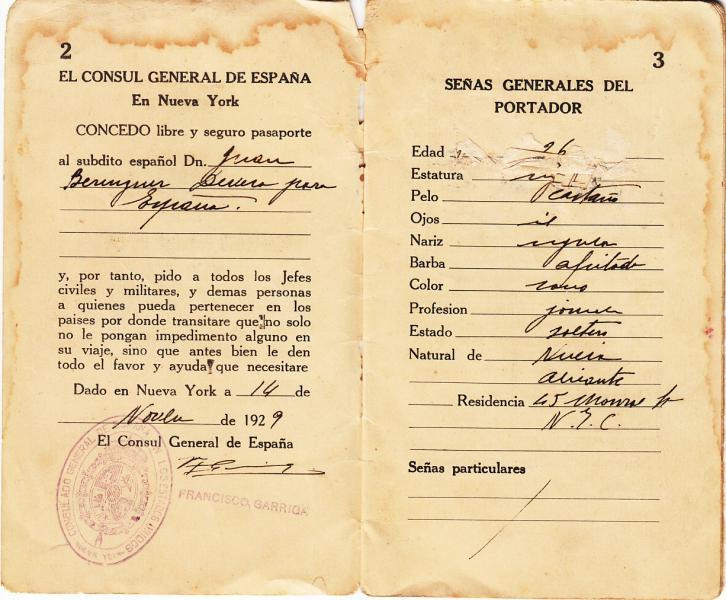Pasaporte Republicano de 1932 expedido en el consulado de España en Nueva York.