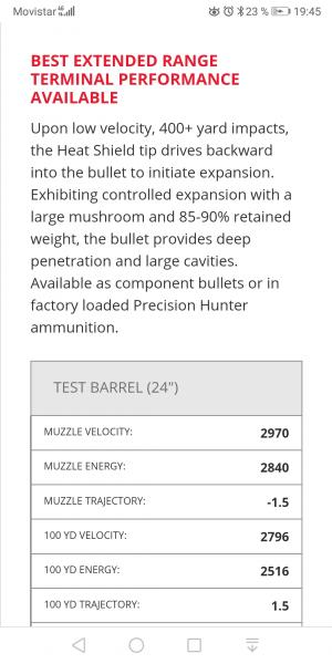 Gormagnum escribió:Página oficial de Hornady la Eld-x 270w 905 m/s en boca. Lo real hay que medirlo con cronómetro.