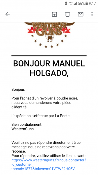 pues, cómo no me gusta quedar mal he preguntado que se necesita para comprar un revólver de pólvora negra a una tienda francesa....