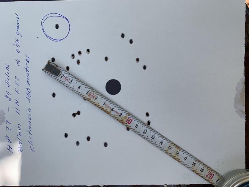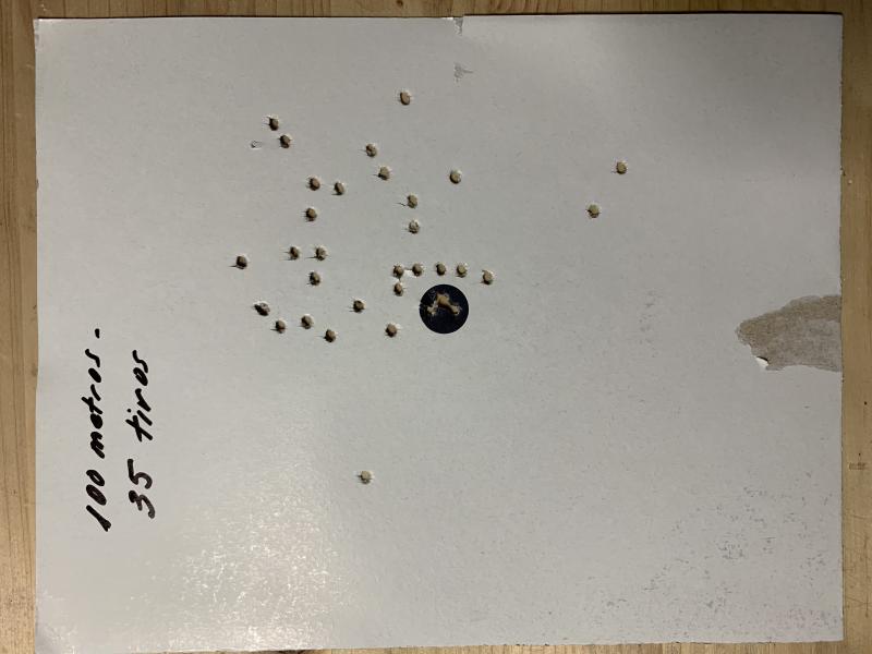 Me dediqué varios días a practicar los 100, como me iban mejor de lo que me había imaginado, me propuse como meta intentar impactar en un circulo de unos 5 centímetros.