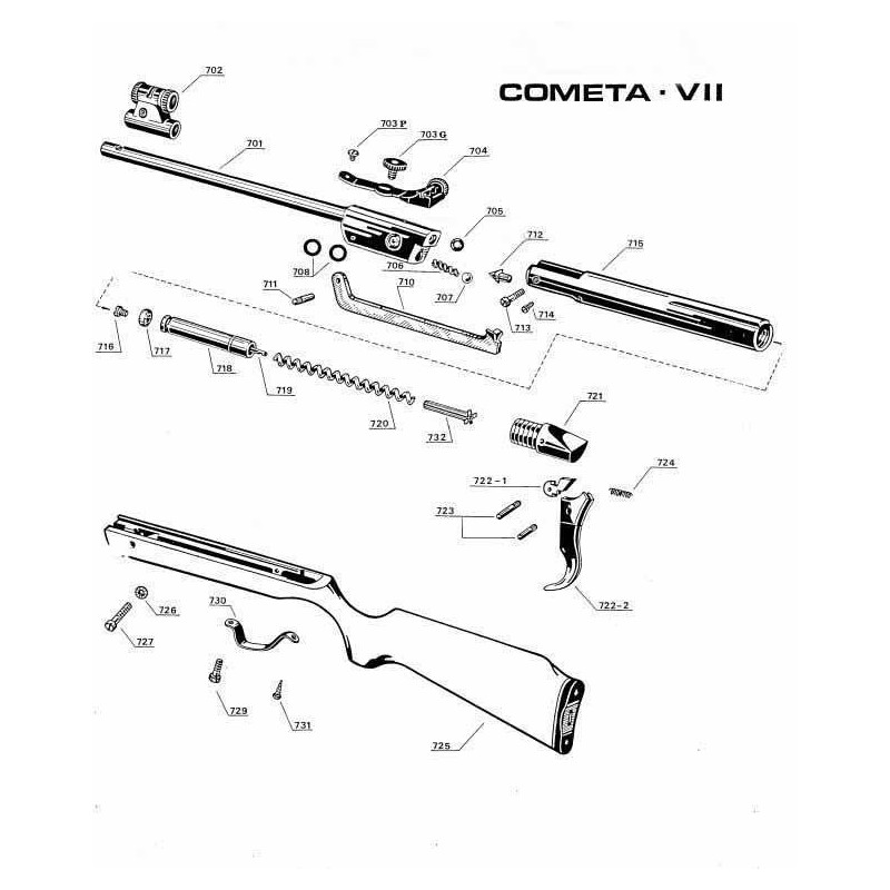 Quería saber si algún compañero ha tenido en una Cometa VII el mismo problema y cómo lo ha solucionado. He buscado el despiece de la carabina, pero hay muy poca información sobre este modelo y es imposible conseguir esa pieza nueva (722-1).